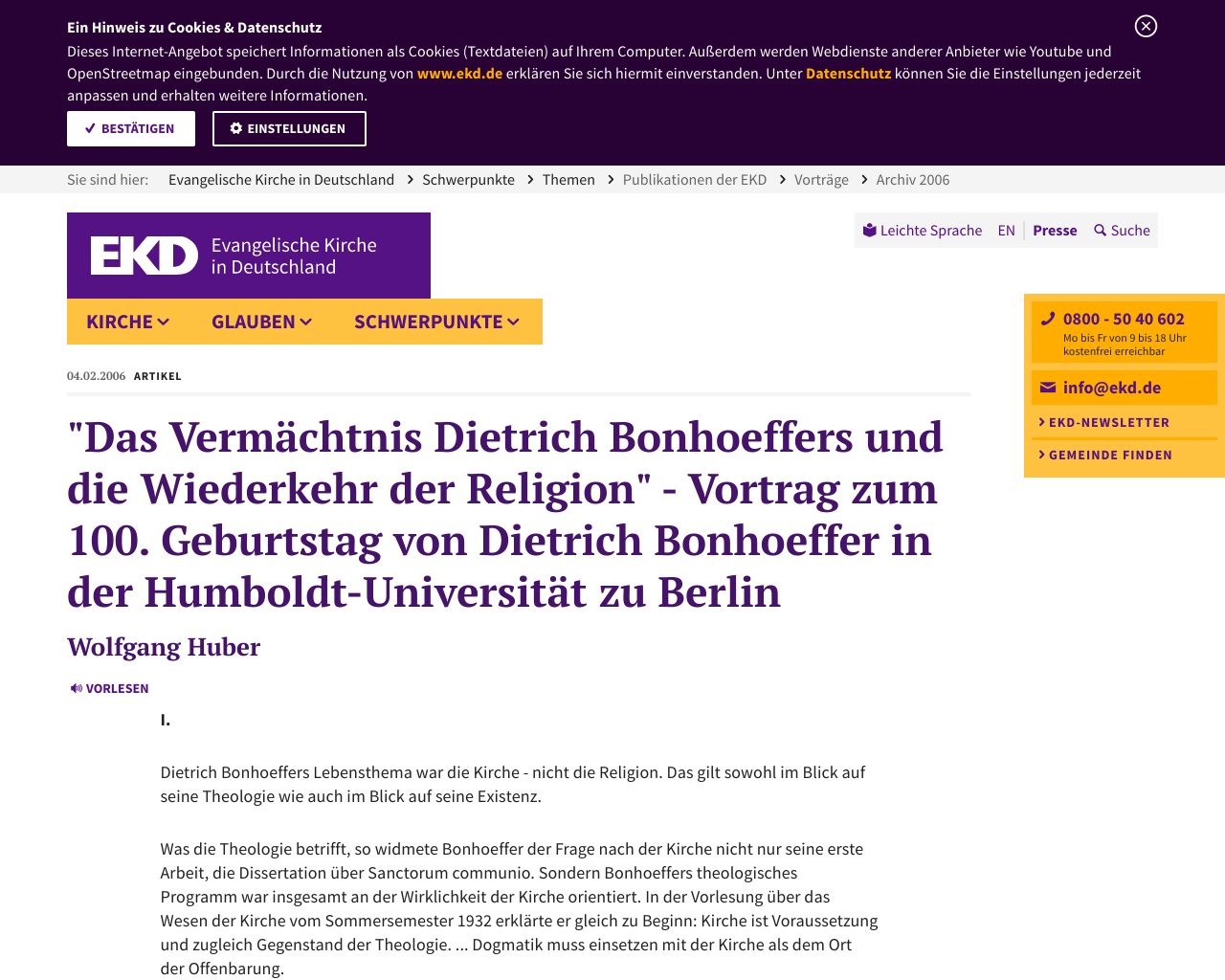 Die vielen aufsätze und briefe, in denen er sich zu kirchlichen problemen äußerte, seien nur am rande erwähnt.. Literarisch hat bonhoeffer zuallererst in seiner dissertation »sanctorum communio« (dbw 1) über die »kirche« reflektiert.